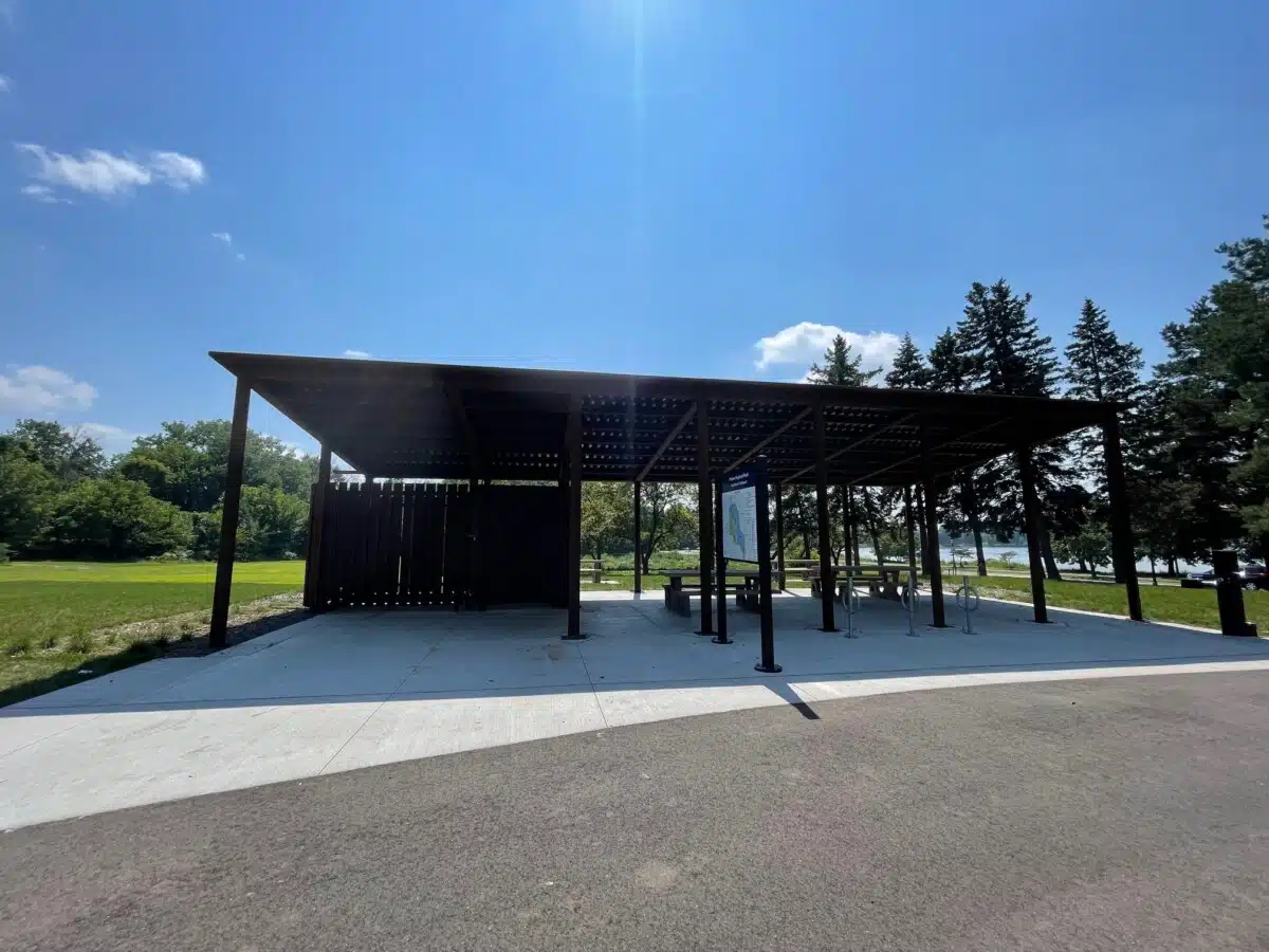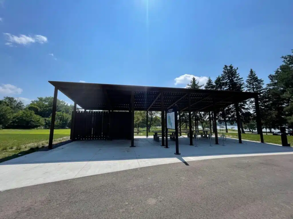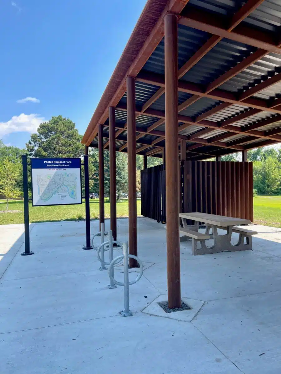 This beautiful trailhead facility sits at an entry point for the Lake Phalen Trail that offers a 3-mile paved loop around the popular lake in St. Paul. The project consisted of a new picnic structure, drinking fountains, and sitework improvements.